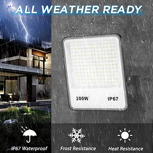 YIQIBRO Faretto LED da Esterno 200W 2 Pezzi, 20000LM Faro LED Esterno IP67 Impermeabile Faretti LED, 6500K Bianca Fredda Luce di Sicurezza per Giardino, Cortile, Garage, Parcheggio, Magazzino