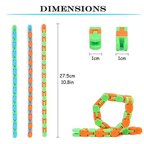 Yiran Sensory Wacky Tracks Snap And Click Fidget Toys Fidget Catena Fidget Braccialetto per alleviare Lo Stress o per Feste, Colori Assortiti, 24 Maglie 3 Pezzi