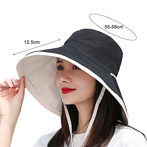 Yirepny Cappello da sole da donna, a tesa larga, da donna, in cotone, pieghevole, per pesca, viaggi, escursionismo, spiaggia, golf, protezione UPF 50+, Nero, S