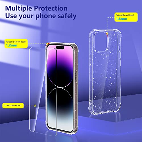 YIRSUR Cover Compatibile con iPhone 14 Pro Max, con 2 Pezzi Vetro Temperato e 2 Pezzi Pellicola Fotocamera, Trasparente Glitter Custodia Protettiva Antiurto con Paraurti in TPU Morbida
