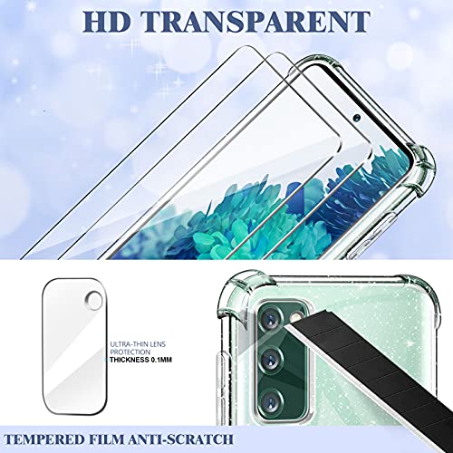 Compatibilità: Glitter Cover Protettiva Antiurto Compatibile con Samsung Galaxy S20 FE 4G/5G 6.5", Pacchetto Include: 1 Pezzi Cover, 2 Pezzi Vetro Temperato Pellicola Protettiva, 2 Pezzi Pellicola Fotocamera.