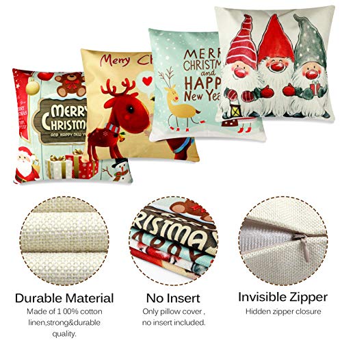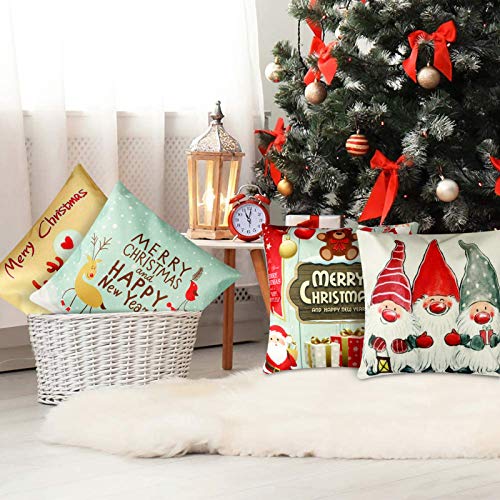 YIRSUR Natale Federa, 4pcs Federa Cuscini Cotone Biancheria Buon Natale Babbo Alce per divani Decorativo Biancheria Cuscino Decorazioni Natalizie Divano (45x45cm) (Colorful)