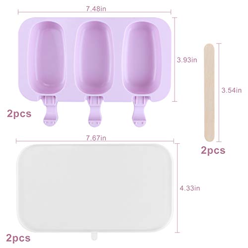 YIRSUR 2 stampi per gelato a 6 celle, in silicone, con 40 steli in legno, per torte, per dolci fai da te, per bambini, adulti