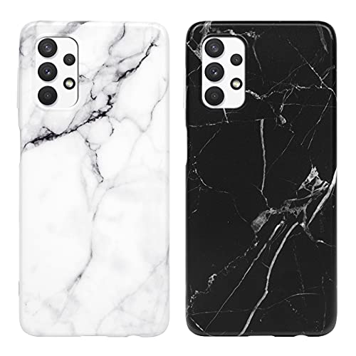 Yiscase Custodia in marmo compatibile con Samsung Galaxy A32 5G, in silicone opaco, [2 pezzi] morbido TPU custodia ultra sottile custodia flessibile per Galaxy A32 5G, colore: bianco e nero