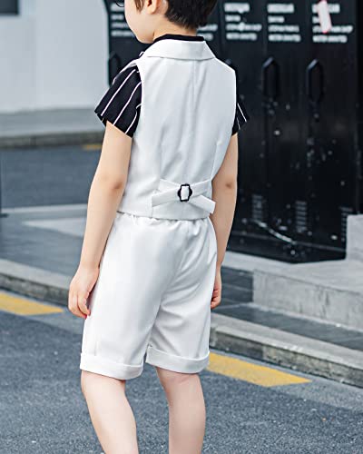 Yishengwan 4 Pezzi Bambini Ragazzi Eleganti Abiti da Cerimonia Smoking Abbigliamento Set, Camicia a Manica Corta + Papillon + Gilet + Pantaloni per Nozze Cerimonia Bianca 90