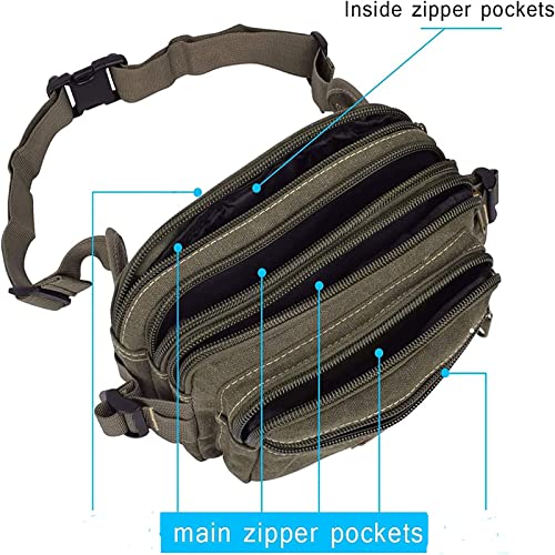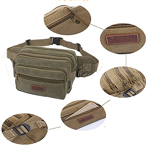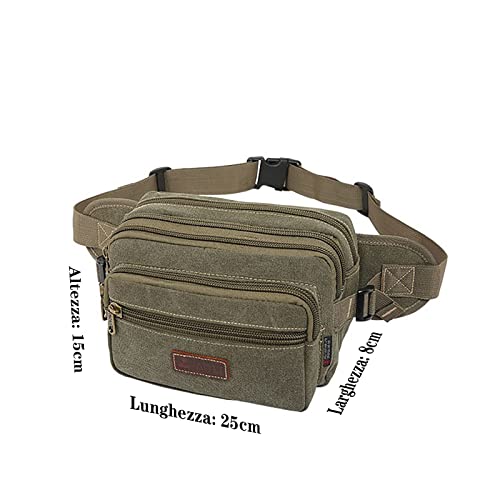 YISILINYX Marsupio Uomo,7 Tasche con Ccerniera,Marsupio con Tracolla Regolabile,Regolabile per Corsa, Ciclismo Escursione,Campeggio,Viaggio(Verde)