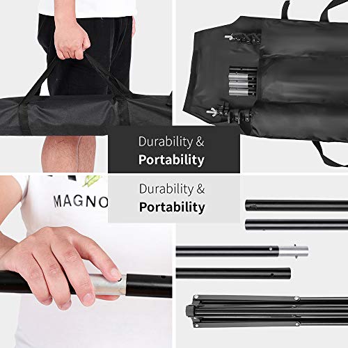 I nostri stand completamente regolabile sono realizzati in lega di alluminio grande per forza e portabilità. Sono leggeri e estremamente facile da installare. Facilmente regolare la larghezza rimuovendo una delle traverse in sezioni telescopiche. Larghezza massima: 200 cm