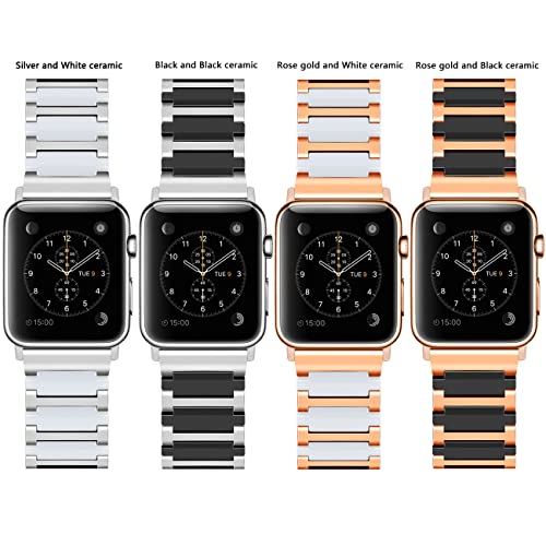 YISIWERA 38mm 40mm 41mm 42mm 44mm 45mm Oro rosa Argento Cinturino in acciaio inossidabile Cinturino in ceramica bianco nero per Apple Watch iWatch 6 5 4 3 2 1 (38mm/40mm/41mm, oro rosa + bianco)