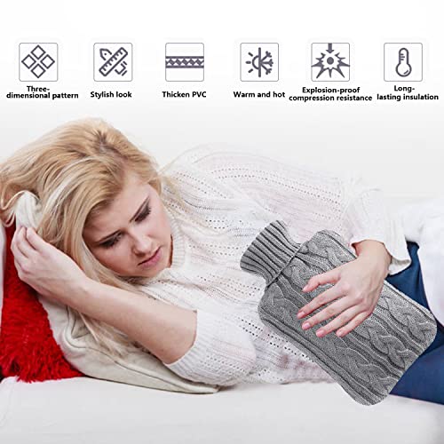 YISKY Borsa Acqua Calda 2L, Anti-perdita Borsa Acqua Calda, Hot Water Bottle,Borsa Dell'acqua Calda con Coperchio, Borsa Dell'acqua Calda Lavorata a Maglia, Rapido Sollievo dal Dolore e Comfort