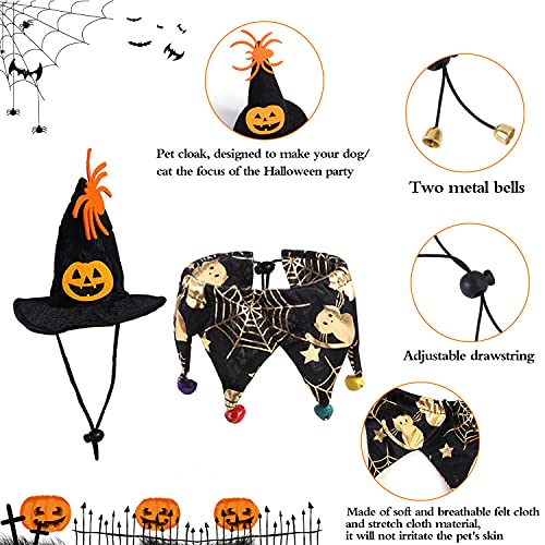YISKY Halloween Pet Costume, 2 Pezzi Costume Gatto Halloween, Costume Halloween Cani, Gatto Halloween Strega Cappello Sciarpa, Regolabile, per Feste di Halloween, Pet Dress up Halloween