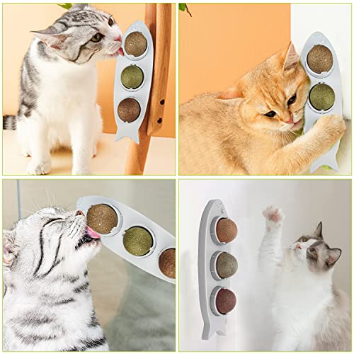 【Elevata flessibilità】le basi di questi giocattoli per gatti catnip sono autoadesive, le palline sono rimovibili separatamente, quindi puoi incollarle comodamente sul letto, sul divano, sulla porta, sul muro, sulla finestra o in altri luoghi, molto adatto per i gatti da leccare e giocare.