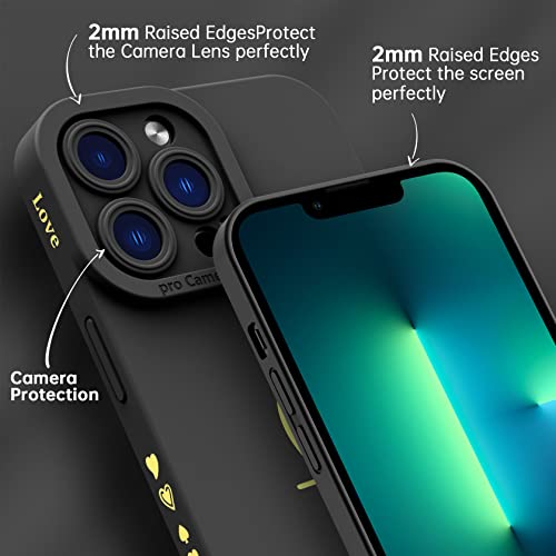 YisrLery Cover Compatibile con iPhone 13 Pro Custodia e 2 Pezzi Vetro Temperato, Motivo a Cuore Carino, Protezione Fotocamera Silicone Liquido Morbido Cover per iPhone 13 Pro 6.1" - Nero