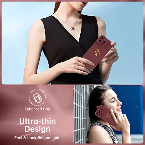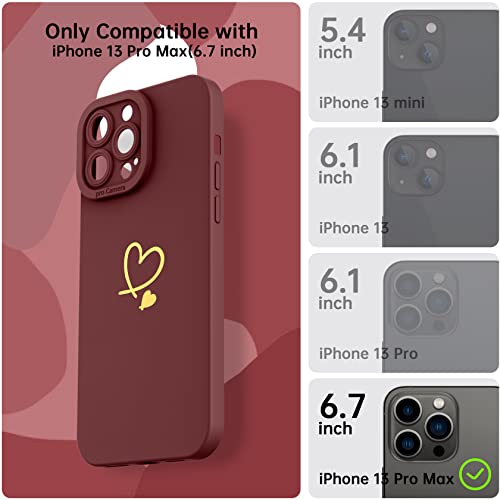 YisrLery Cover Compatibile con iPhone 13 Pro Max Custodia e 2 Pezzi Vetro Temperato, Motivo a Cuore Carino, Protezione Fotocamera Silicone Liquido Morbido Cover per iPhone 13 Pro Max 6.7" - (Claretto)