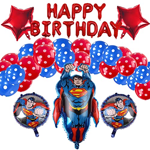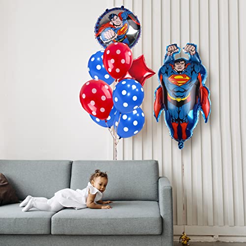 【Decorazione perfetta per feste】: i palloncini di compleanno di Superman includono stelle a cinque punte, palloncini lucidi a pois e ovali, squisite decorazioni per feste, palloncini con pellicola numerata, striscioni Happy Birthday, ideale per feste a tema supereroi, compleanni per bambini per feste di compleanno.