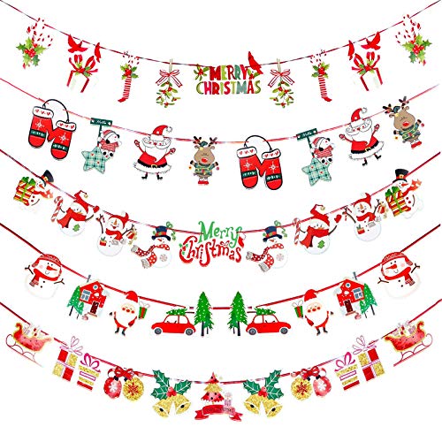 Yisscen Stendardo con ghirlanda natalizia, Catena di stendardi natalizi, festoni di decorazioni natalizie, festoni per la festa di capodanno di Natale Decorazione fai da te (5 pezzi)