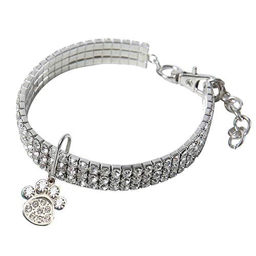Yissma Collare di Strass per Cani, Mini Bling Pet Cane Strass Collana a Forma di Zampa Regolabile per Cani di Taglia Piccola