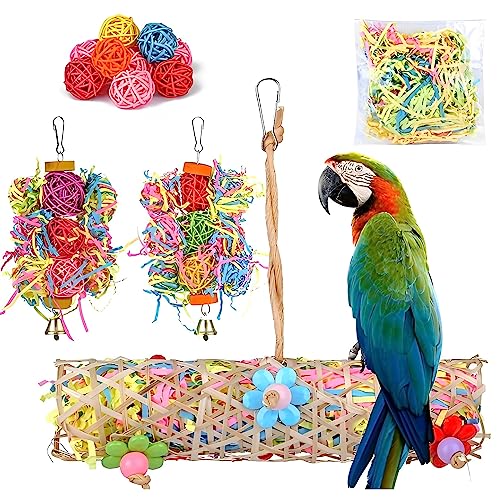 SICURO: I giocattoli per la triturazione degli uccelli sono realizzati in rattan naturale, seta di carta, strisce di bambù, tronchi e la seta di carta colorata è fatta di pigmenti sicuri, commestibili. Durevole e sicuro per gli uccelli.