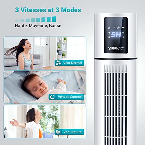 YISSVIC Ventilatore Colonna Oscillante 88 cm con telecomando Ventilatore Torre Timer 8H Touch Screen LCD per Scrivania Camera