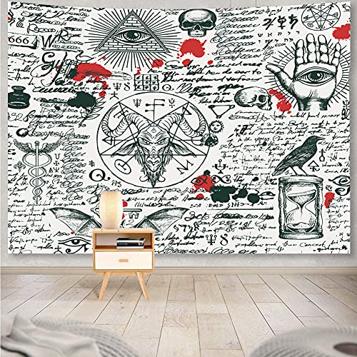 YISURE Arazzo Simbolo del Diavolo Arazzo Pentagramma Tutti Gli Occhi Vedenti Corvo Pipistrello Arazzi per La Decorazione Domestica, 230 x 180 cm