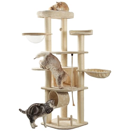 YITAHOME Tiragraffi per Gatti Grandi, XXL Tiragraffi Extra Large per Gatto con Nido in Acrilico, Graffiatoio per Gatti con Colonne Rivestite in Sisal/Condomini/Amaca/Tunnel/Ciotola per Gatti, 175 cm