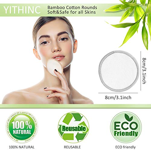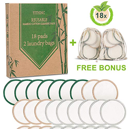 YITHINC 18 Confezioni di Dischetti Riutilizzabili per il Trucco, Tondi in Cotone Organico Dischetti in Bambù Morbido con 2 Sacchetti per Biancheria.3 Colori per Tutti i Tipi di Pelle. Ecologici