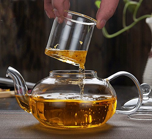 Il teiera vetro è realizzato interamente in vetro borosilicato resistente al calore. Queste teiere possono essere utilizzate per infondere tutti i tipi di tè, come tè al gelsomino, tè oolong, tè verde, tè nero, tè alla frutta, tè al gong fu e così via.