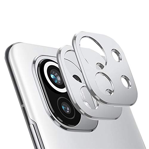 Yiunssy [2 Pezzi Protezione Fotocamera per Xiaomi Mi 11, Copertura Totale, materiale metallico di alta qualità, Pellicola Fotocamera per Xiaomi Mi 11 - argento