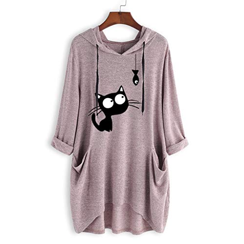 Yivise - Felpa da donna con cappuccio, con orecchie di gatto, a maniche lunghe, taglie forti, casual, taglia XL, colore: Rosa