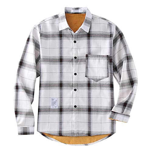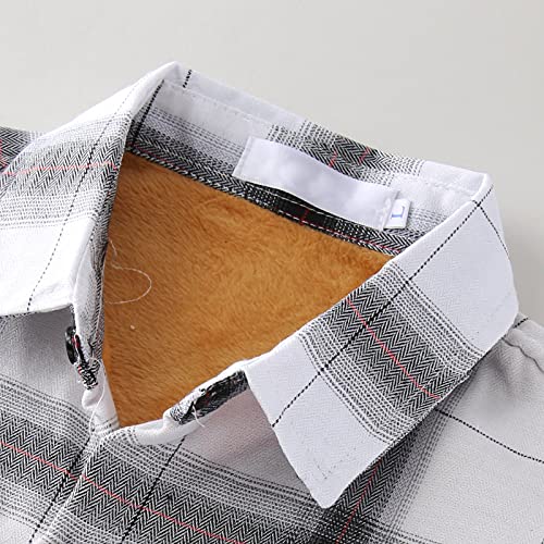 Yivise Flanella Peluche Pile Plus Size Camicia Manica Lunga Button Up Risvolto Regolare Camicia Casual Plaid, 2# bianco., XXL