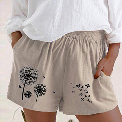 Yivise - Pantaloncini da donna in cotone e lino, con coulisse in vita, comodi pantaloncini estivi da spiaggia con tasche Beige XL
