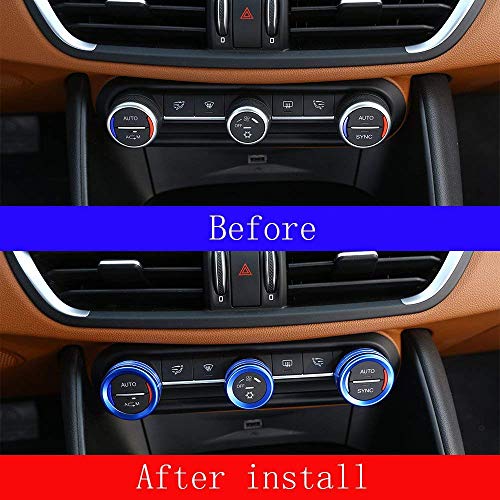 YIWANG 3 Colori In Lega di Zinco Auto Console Interna Aria Condizionata Manopole Circle Trim 3pcs Per Giulia Stelvio 2016-2020 Accessori Auto (Blu)