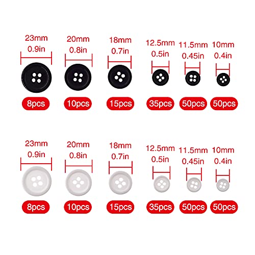 YIXISI 336 Pezzi Bottone Tondo in Resina, Nero + Bianco Ciascuno in 6 Taglie Bottone in Resina a Quattro Fori, per Cucito Fai da Te, Decorazioni Artigianali, Sostituzione Bottoni