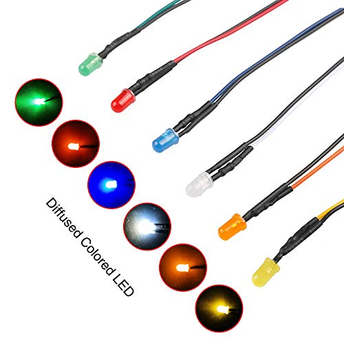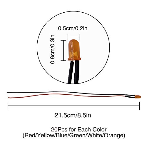 YIXISI 120 Pezzi 5mm Diodo ad Emissione Luminosa LED, Precablata 12V 20cm, LED Colorate Diffuse per Illuminazione, Modellazione di Prototipi (Bianca/Rosso/Blu/Verde/Giallo/Arancia)