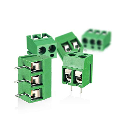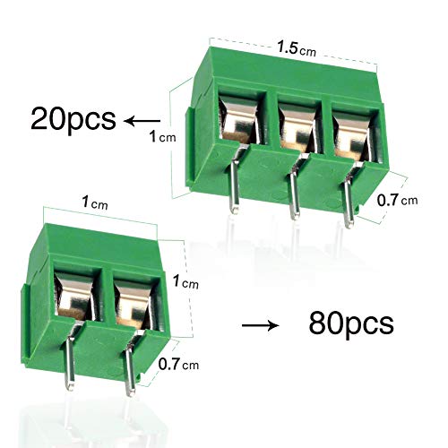 YIXISI 100 Pezzi 5mm 2 Pin (80pz)/ 3 Pin (20pz) PCB Morsettiera a Vite, per Prototipo Scheda Circuito Stampato per Arduino (Verde)