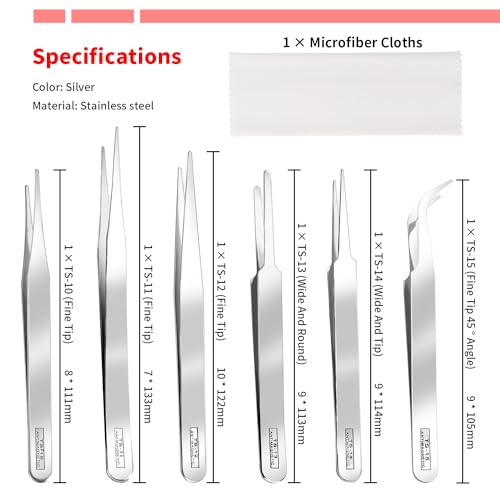 Contenuto Della Confezione: 6 Pezzi pinzette e 1 Pezzi panno in microfibra, una quantità sufficiente può soddisfare le vostre diverse esigenze.