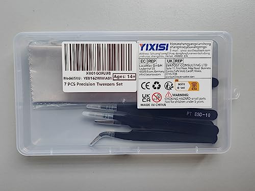 YIXISI 7 Pezzi Pinzette di Precisione ESD Kit, Pinzette Industriali Antistatiche in Acciaio Inossidabile, con Panni per La Pulizia, per Elettronica, Saldatura, Gioielli, Artigianato, Laboratorio
