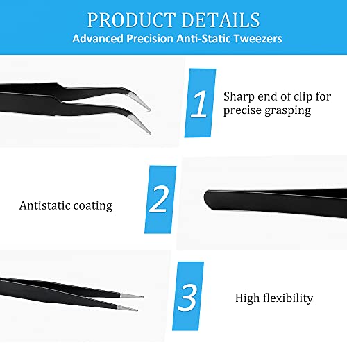 Design sicuro: utilizza un design ergonomico con punta moderatamente flessibile per garantire fermezza, precisione e ridurre l'affaticamento del lavoro. Ogni pinzetta ha una custodia protettiva per evitare danni alla punta delle pinzette lesioni per gli utenti.
