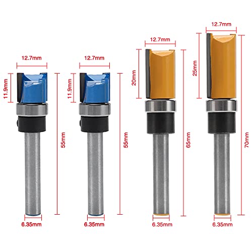 YIXISI 4 Pezzi Punte per Fresa con 6.35mm Codolo, Punte per Router Modello con Profilo a Filo Gambo, 3 Misure