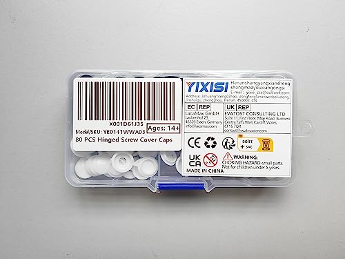 YIXISI 80 Pezzi Tappi Coprivite Incernierato in Plastica, Tappi a Vite Piega per Numero 6/8 Viti, Ripiegabile Coprivite per Mobili, con Scatola di Stoccaggio, Bianca/Nero