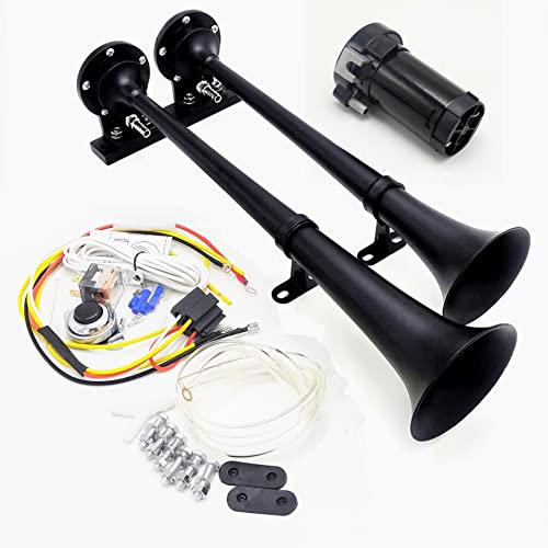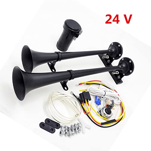 YIYDA Clacson per auto 160db Car Horn 24V Tromba d'aria per auto nero zinco cromato doppio tubo tromba per camion Clacson elettrico clacson di allarme con pompa d'aria per 24V auto SUV camion ecc