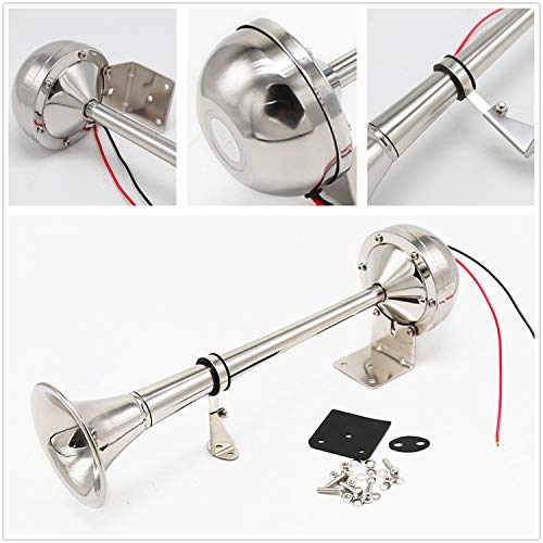 YIYDA Clacson Tromba per barca Tromba per auto 160DB Potente corno per auto Argento Tromba elettrica con staffa di montaggio Singolo acciaio inossidabile in acciaio 304 Car Horn 24V Camion per ecc