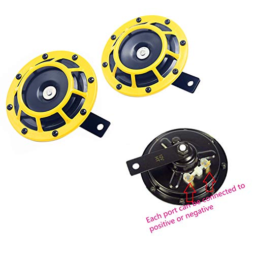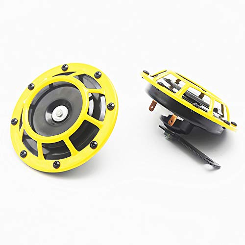 YIYDA Corno per auto Clacson elettrico da 135DB Car Horn per auto clacson ad alta e bassa giallo con doppio disco con staffa di protezione gialla, per qualsiasi 12V auto camion SUV moto ecc