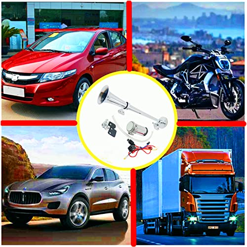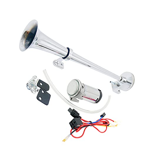 YIYDA Tromba per auto Tromba d'aria Tromba per camion 150db Air Horn Tromba monotubo argento zinco cromato Tromba da 45cm Altoparlante Tromba d'aria con compressore Car Horn per 12V Car Boat Train ect