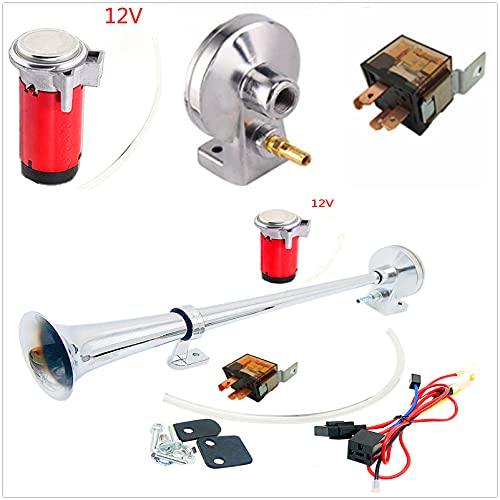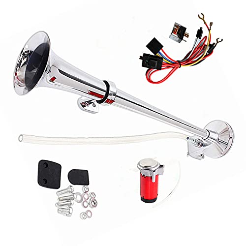 YIYDA Tromba per auto Corno ad aria forte 150db Car Horn singola in zinco cromato Altoparlante da 45cm Corno per camion con compressore rosso per universale Corno di allarme per 12V Car Barca auto ect