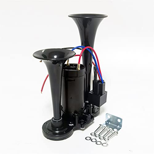 ♥ ✔ Il kit clacson 24V include clacson, relè, fusibile, 5 fascette e cavo di alimentazione da 1,5 m. Hardware di montaggio di base. Elegante ed unico design nero a doppio tubo per bassi alti, di grande diametro, produce un suono profondo simile al rimorchiatore o al clacson del treno.