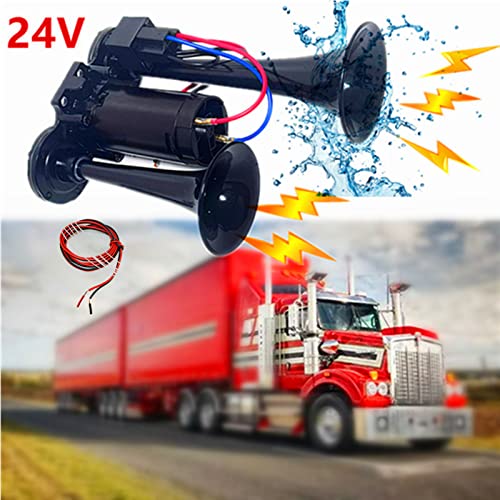 YIYIDA clacson per auto Car Horn clacson elettrico per auto 165db Trombe Clacson acuti e bassi neri 24V Altoparlante per clacson per camion a doppio tubo Air Horn oratore per 24V camion barca ecc
