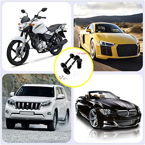 YIYIDA Corno di auto car horn clacson ad aria da 150 dB doppio tubo, clacson in zinco cromato, tromba con compressore per qualsiasi veicolo da 12 V camion barche auto furgoni treni camion