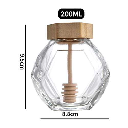 Yiyifor Vaso per miele da 200 ml, 1pcs Barattolo di Miele in Vetro Trasparente con Coperchio in Legno e Tappo in Sughero Vuoto Ricaricabile per la Casa e la Cucina