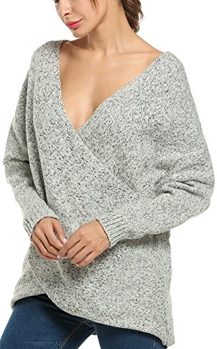 Yiyou donne inverno pullover manica lunga con scollo a V in maglia maglione croce Wrap Baggy jumper