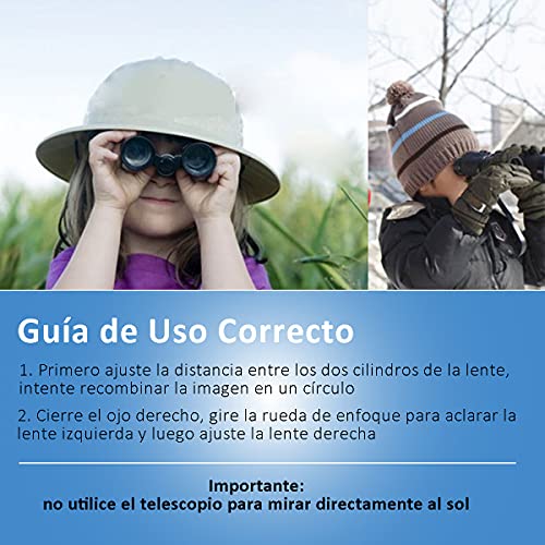 Design adatto per bambini: mini binocolo, piccolo e leggero, perfetto per le mani dei bambini. L'impugnatura antiscivolo rende i bambini più saldi i binocoli più saldi. Messa a fuoco facile semplicemente ruotando il quadrante centrale. Design regolabile e pieghevole per adattarsi alla distanza tra gli occhi di ogni bambino. Tutti questi ultimi raggiungono il design più amichevole per il vostro bambino.